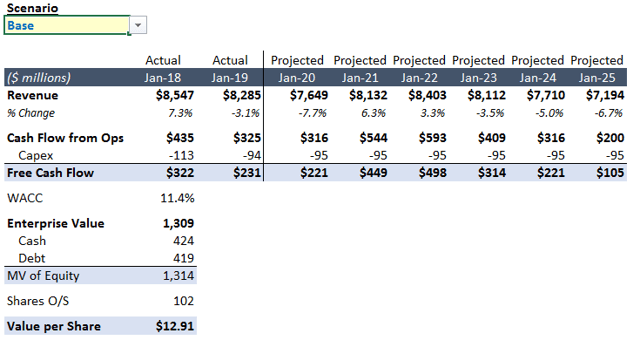 - BEAR - BASE - BULL Case would show a value range of 0$, 7.81$ and 43$ per share.